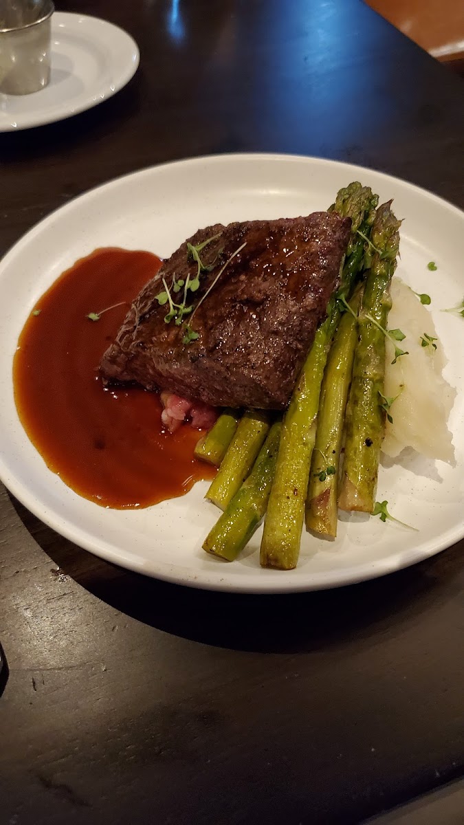 I recently had an incredible experience at Salt & Marrow. This spot is perfect for a date night or meeting up with a friend. The restaurant offers three dining options: the main restaurant, the lounge, and a rooftop bar with a limited menu. Be mindful of the dress code—if you’re not dressed accordingly, you'll be seated in the lounge or bar area, both of which are still great options. Food-wise, I can’t recommend the kangaroo steak highly enough—it’s a must-try! Their steaks in general are exceptional, and the full lobster dinner with crab rice was a standout. My personal favorite, though, was the lamb chops—absolutely phenomenal. Our server, Amelia , was fantastic, providing great drink recommendations and outstanding customer service. All in all, Salt & Marrow is a fantastic dining experience that I’d highly recommend!